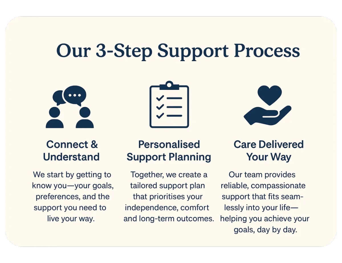Our team takes a personalised, compassionate approach—designing flexible support plans that align with your goals, independence, and lifestyle.
